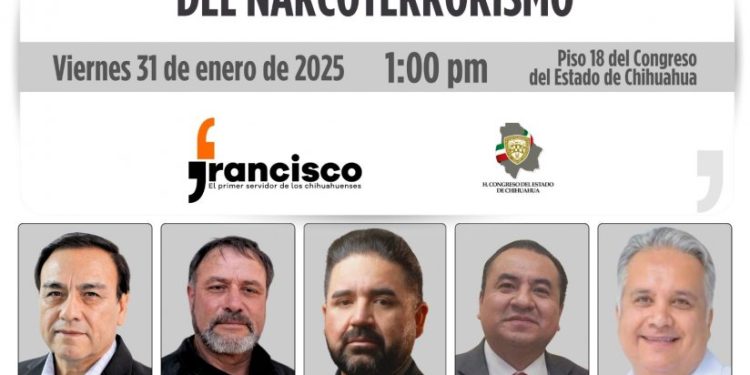 Francisco Sánchez indicó que estas mesas técnicas se celebrarán en el Piso 18 del Congreso del Estado de Chihuahua este viernes 31 de enero a la 1:00 pm, en un ejercicio abierto a la sociedad civil para la construcción de un marco normativo para establecer el delito de narcoterrorismo en el Código Penal.
