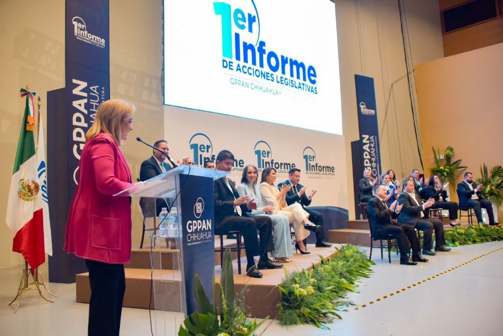 La gobernadora del Estado de Chihuahua, Maru Campos Galván, estuvo presente como invitada especial durante el Primer Informe de Acciones Legislativas del Grupo Parlamentario del Partido Acción Nacional (GPPAN) de la LXVII Legislatura del Congreso del Estado, evento en el que refrendó su compromiso con las y los diputados del partido para dar cabida a políticas públicas que consoliden un mejor Chihuahua.