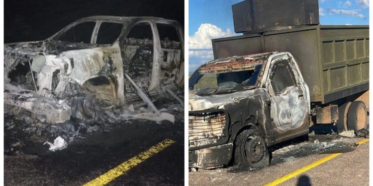 La tarde y noche del lunes 16 de septiembre, las Bases de Operación Interinstitucional (BOI), atendieron reportes sobre la localización de dos vehículos con daños por incendio, en diversos puntos de la carretera que conduce del municipio de Coronado a Valle de Allende.