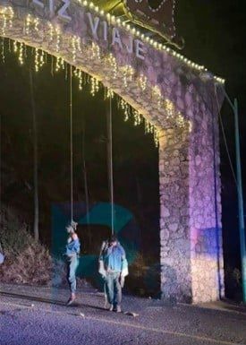 Ambos presentaron heridas producidas por proyectil de arma de fuego en diferentes partes del cuerpo y se encontraron suspendidos del arco de piedra ubicado en el referido lugar.