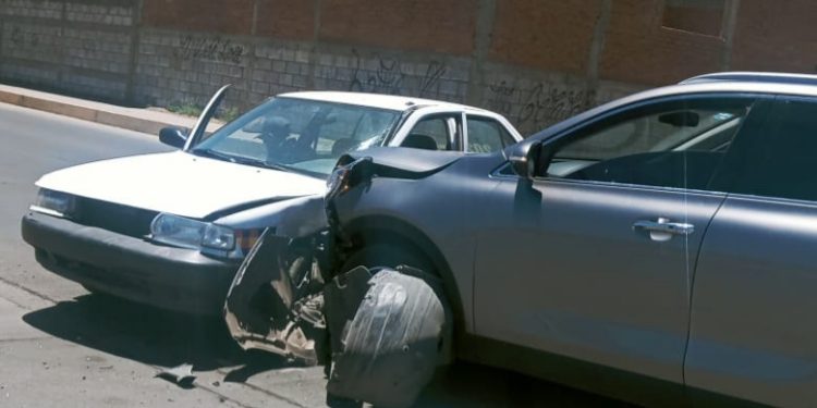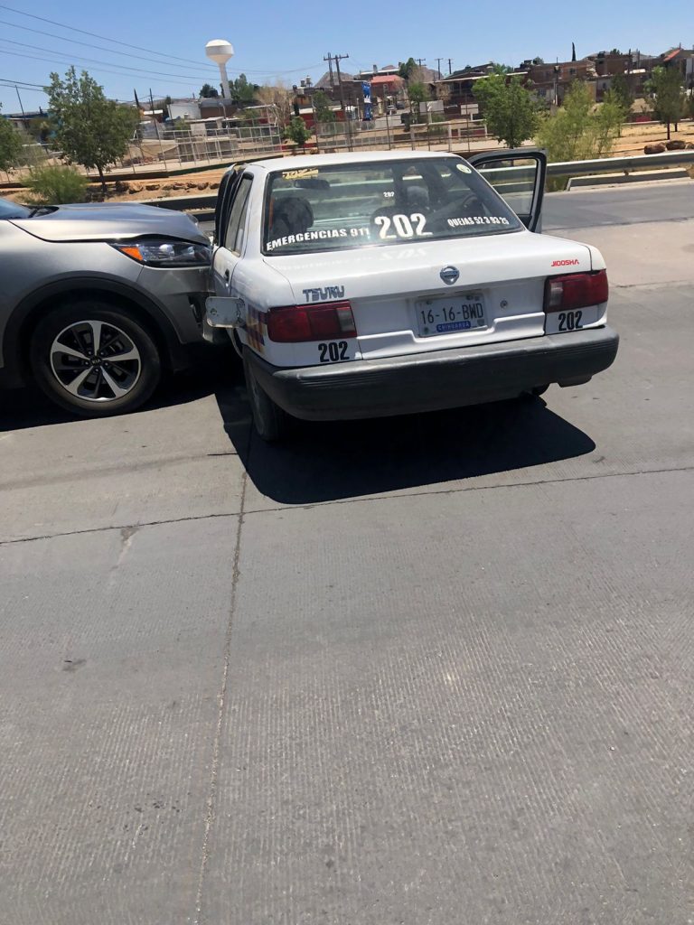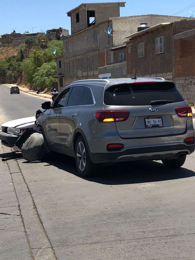 Agentes de Vialidad tomaron nota del percance en el que una KIA Sorento impactó de manera frontal a un Nissan Tsuru habilitado como carro de sitio con número económico 202, dejando el encontronazo cuantiosos daños materiales en ambos automotores.