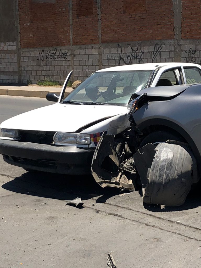 Tremendo impacto entre dos vehículos se registró el mediodía de este sábado sobre la Vialidad del Río en la colonia Tierra y Libertad, justo a la altura de la tienda OXXO que se ubica en el sector, en donde un taxi y una camioneta particular colisionaron.