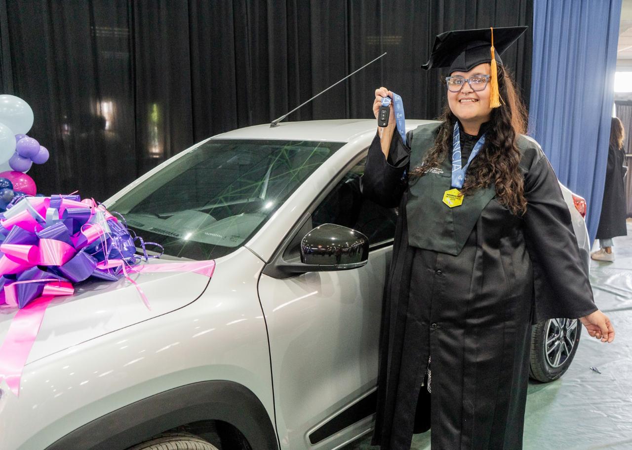 La ganadora del vehículo en la región Chihuahua fue Eunice Hernández González, egresada de la Licenciatura en Humanidades de la Universidad Autónoma de Ciudad Juárez (UACJ) campus Cuauhtémoc, quien destacó que existan este tipo de programas en los que se recompensa el esfuerzo y empeño de las alumnas y los alumnos.