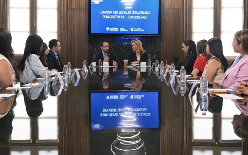 La gobernadora Maru Campos convivió e intercambió puntos de vista, con los 9 estudiantes beneficiarios de las becas de Formación Profesional de Corta Estancia en Washington D. C.- Generación 2025, otorgadas por Gobierno del Estado.