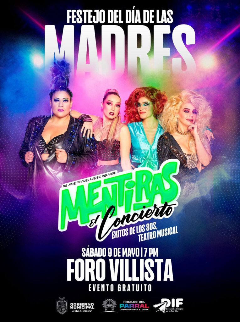 El Gobierno de Parral anunció la realización de un festival con motivo del Día de las Madres, en el que se presentará “Mentiras, el Concierto”, basado en la exitosa obra de José Manuel López Velarde e inspirado en la música de los años 80. La función se llevará a cabo el sábado 9 de mayo a las 7:00 de la tarde en el Foro Villista, con acceso totalmente gratuito para las familias.