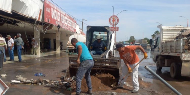 A través de la Secretaría de Comunicaciones y Obras Públicas (SCOP), se inició con los trabajos de limpieza en el local donde ocurrió el percance, para posteriormente iniciar la reconstrucción del mismo, en coordinación con Obras Públicas Municipales.