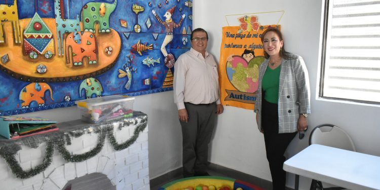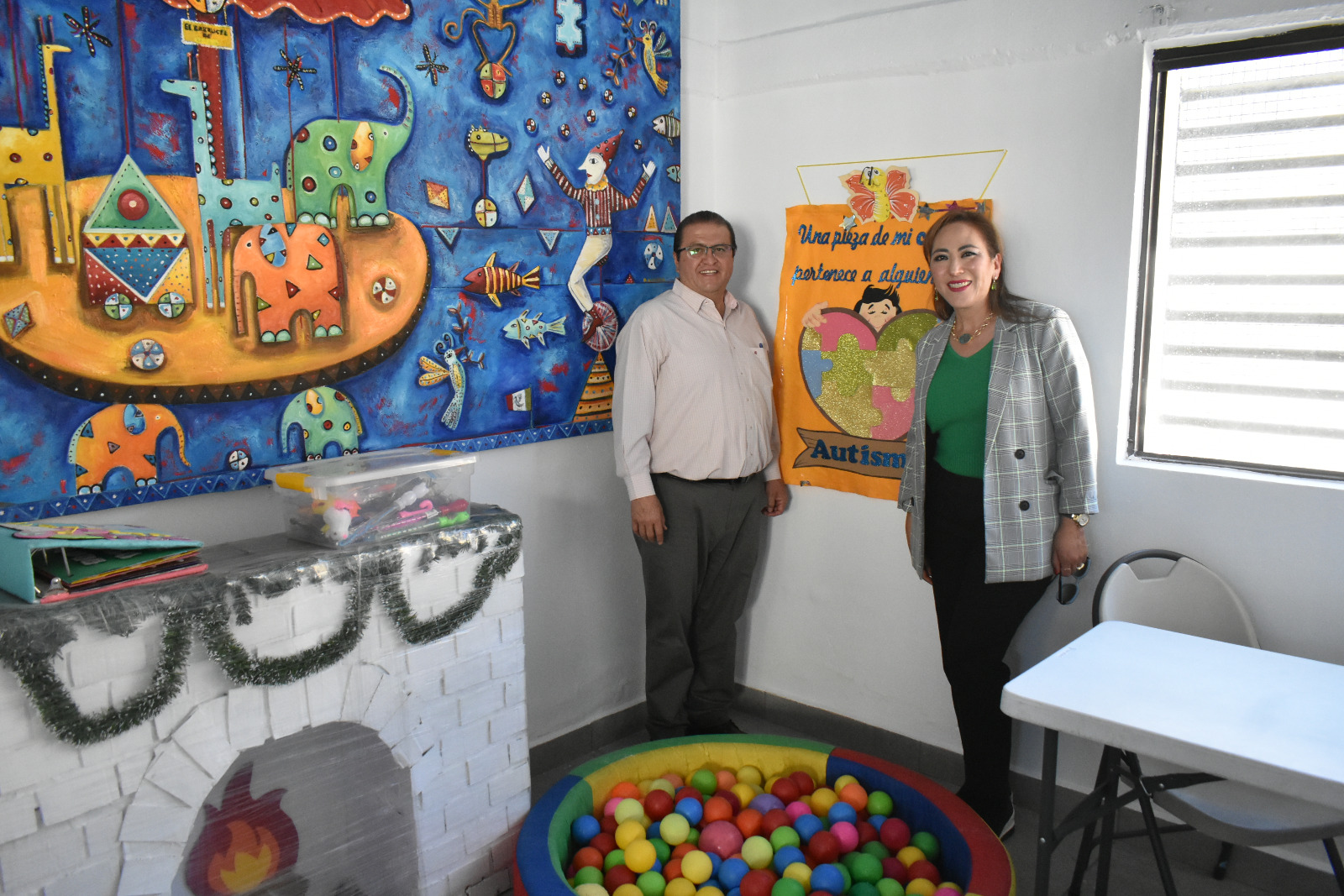 El alcalde de Parral, Chava Calderón, y su esposa, Nora Carrillo, presidenta del DIF, visitaron las instalaciones del Centro de Atención del Espectro Autista (CATEA) en el cual se habilitó un aula para terapia del lenguaje para su mejor operatividad al servicio de 22 niñas y niños ahí atendidos.