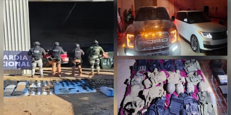 Un operativo coordinado entre fuerzas federales y estatales permitió el aseguramiento de una presunta casa de seguridad en la comunidad de Campo No. 1, municipio de Namiquipa, donde fue localizado un importante arsenal, equipo táctico y al menos 16 vehículos, varios de ellos con blindaje artesanal.