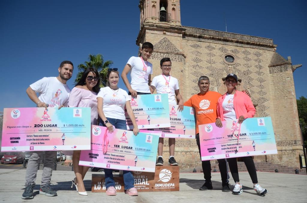 Al respecto, la directora del DIF Municipal agradeció a los participantes por su interés en la carrera y la concientización sobre el cáncer de mama. La titular de Instancia de la Mujer, María Guadalupe Zavala, por su parte, abundó en la importancia sobre la detección temprana de esta enfermedad para tener mayor oportunidad de erradicarla.