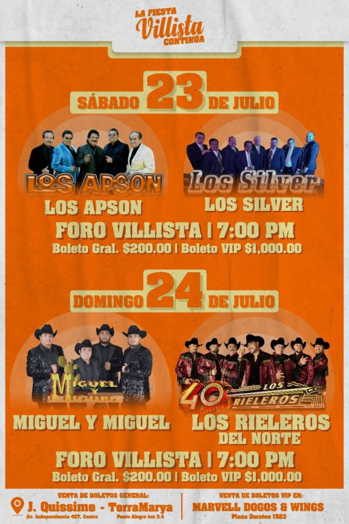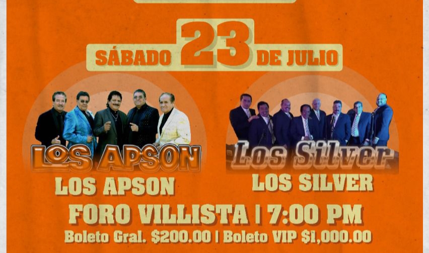 Recuerda que al concluir las Jornadas Villistas, durante ese fin de semana se presentarán el día 23 de Julio los Apson y posteriormente los Silver.