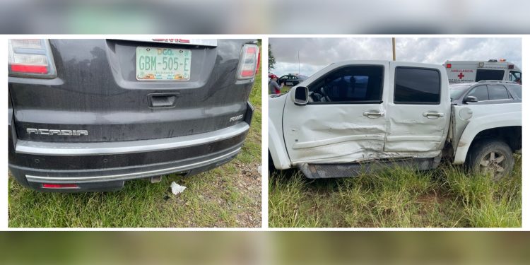 Como se informó, el percance involucró a una camioneta Chevrolet Colorado y una GMC Acadia, lo que derivó en una fuerte movilización de cuerpos de emergencia. En el lugar, personal de Bomberos procedió a la desconexión de los acumuladores de ambas unidades y a la reducción de riesgos mientras paramédicos de la Cruz Roja se hacían cargo de los lesionados.