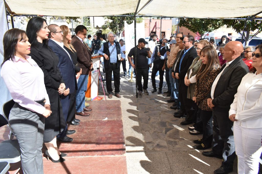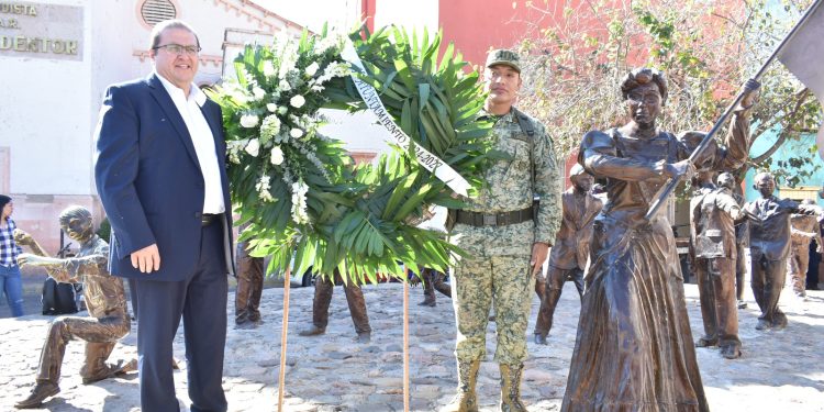 El alcalde de Parral, Salvador Calderón, encabezó la Guardia de Honor que se montó en el monumento dedicado a Elisa Griensen Zambrano frente a la Escuela Primaria 8 de Mayo No. 2099.