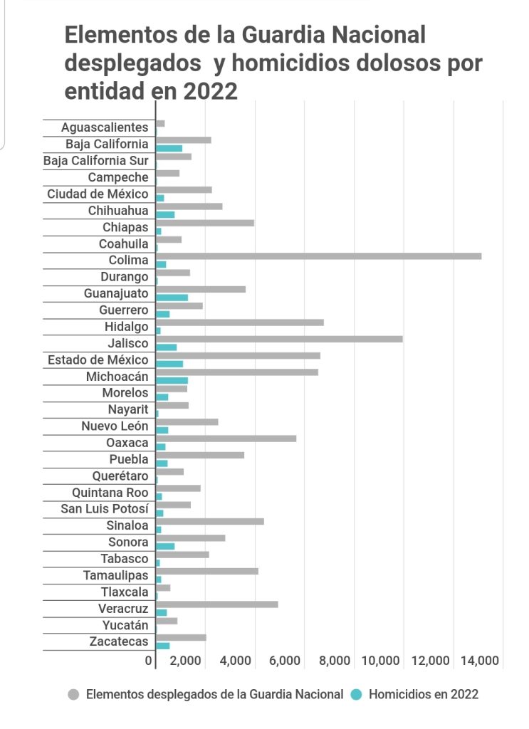 “A pesar de que se le ha invertido una gran cantidad de recursos a la Guardia Nacional, no es una policía eficiente. Un ejemplo: la Policía federal, con una tercera parte de los elementos que tiene la Guardia Nacional, hacía tres veces más detenciones que las que hace la Guardia Nacional, o si se quiere ver de otro modo, la Guardia Nacional, con tres veces el tamaño de la Policía Federal, hace una tercera de las detenciones que hacía la anterior policía”, explica Ricardo Márquez Blas, experto en seguridad pública y autor del estudio «México: Seguridad, Violencia y Futuro en Crisis”.