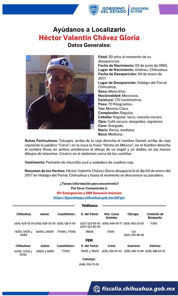 El hombre fue visto por última vez el 4 de enero de 2017 en Parral y desde entonces no se ha sabido nada de él.