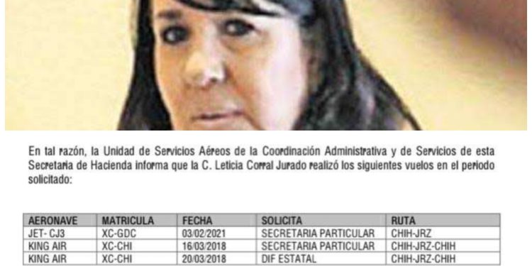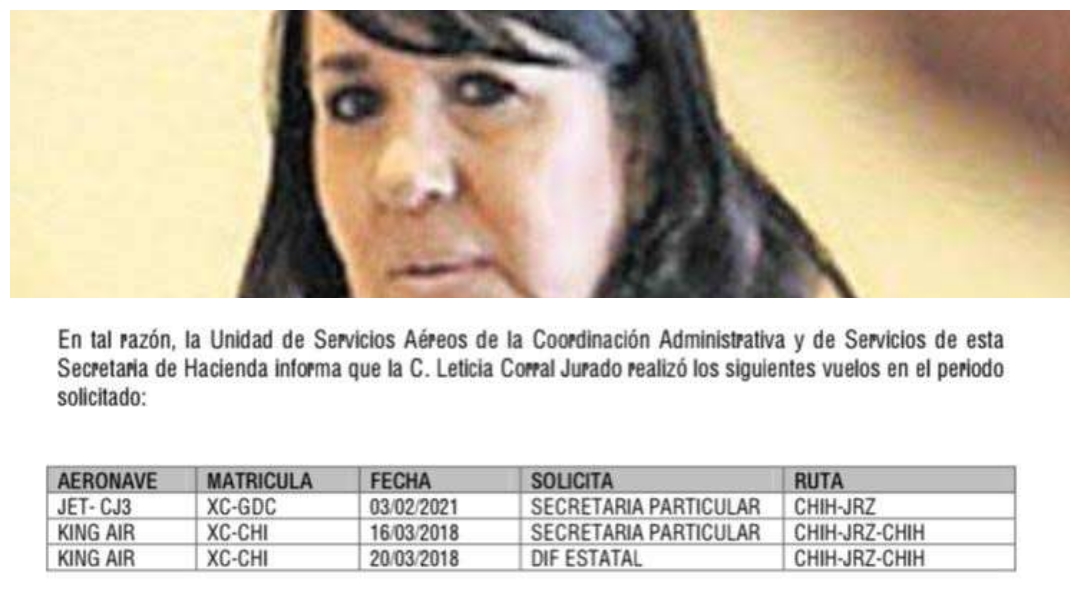 Leticia Corral Jurado, hermana del ex gobernador Javier Corral, utilizó la flotilla aérea del Gobierno del Estado, para viajar de Chihuahua a Ciudad Juárez.
