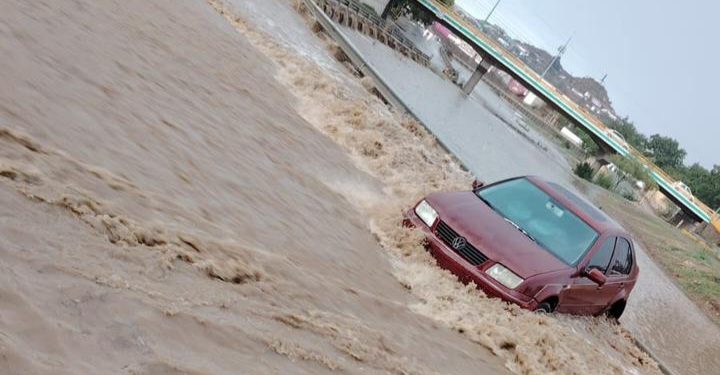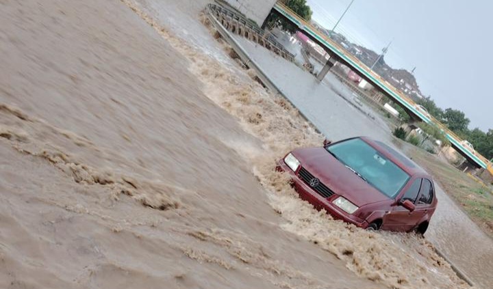 Elementos del Departamento de Bomberos lograron rescatar un automóvil que era arrastrado por la corriente del arroyo en la calle Concepción Meléndez, en dirección a la Vialidad del Río, durante la mañana de este martes.
