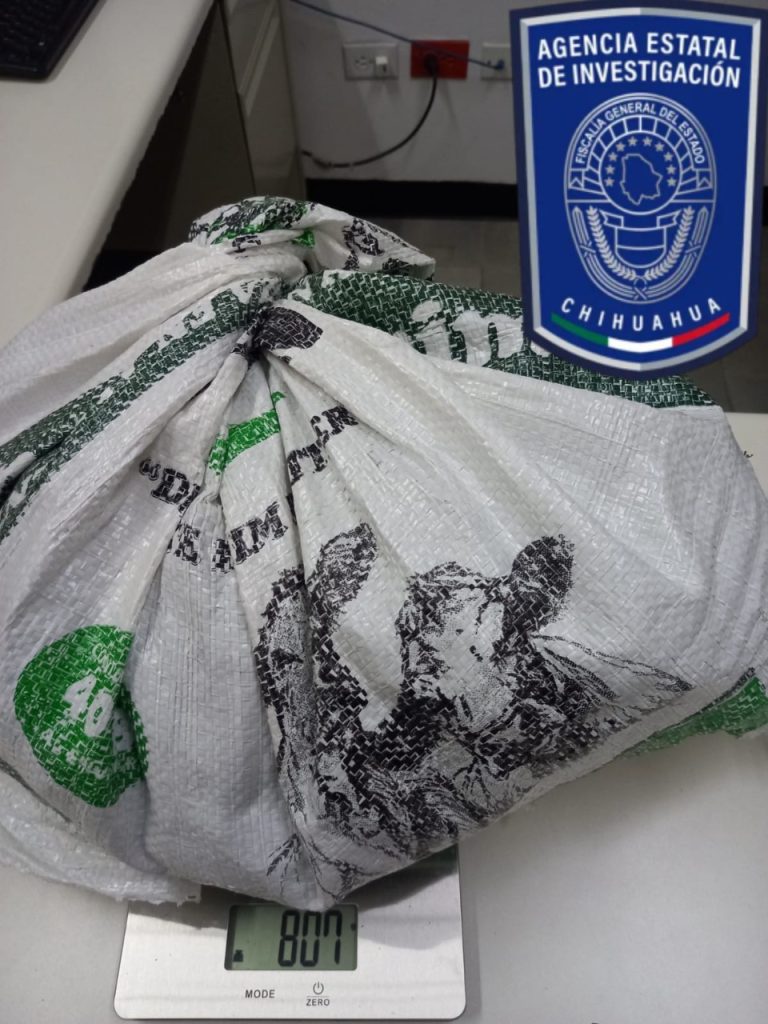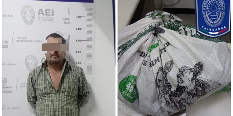 Elementos de la Agencia Estatal de Investigación (AEI) adscritos a la Fiscalía de Distrito Zona Occidente, detuvieron en flagrancia a un hombre que cargaba mariguana en un costal, cuando transitaba por un camino rumbo al Ejido Vista Hermosa, en el municipio de Cuauhtémoc.