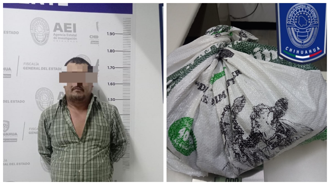 Elementos de la Agencia Estatal de Investigación (AEI) adscritos a la Fiscalía de Distrito Zona Occidente, detuvieron en flagrancia a un hombre que cargaba mariguana en un costal, cuando transitaba por un camino rumbo al Ejido Vista Hermosa, en el municipio de Cuauhtémoc.
