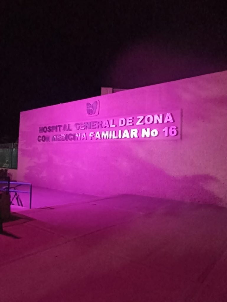 El Instituto Mexicano del Seguro Social (IMSS) en Chihuahua iluminó sus unidades médicas y hospitalarias de color rosa, con motivo del Mes de Sensibilización del Cáncer de Mama.