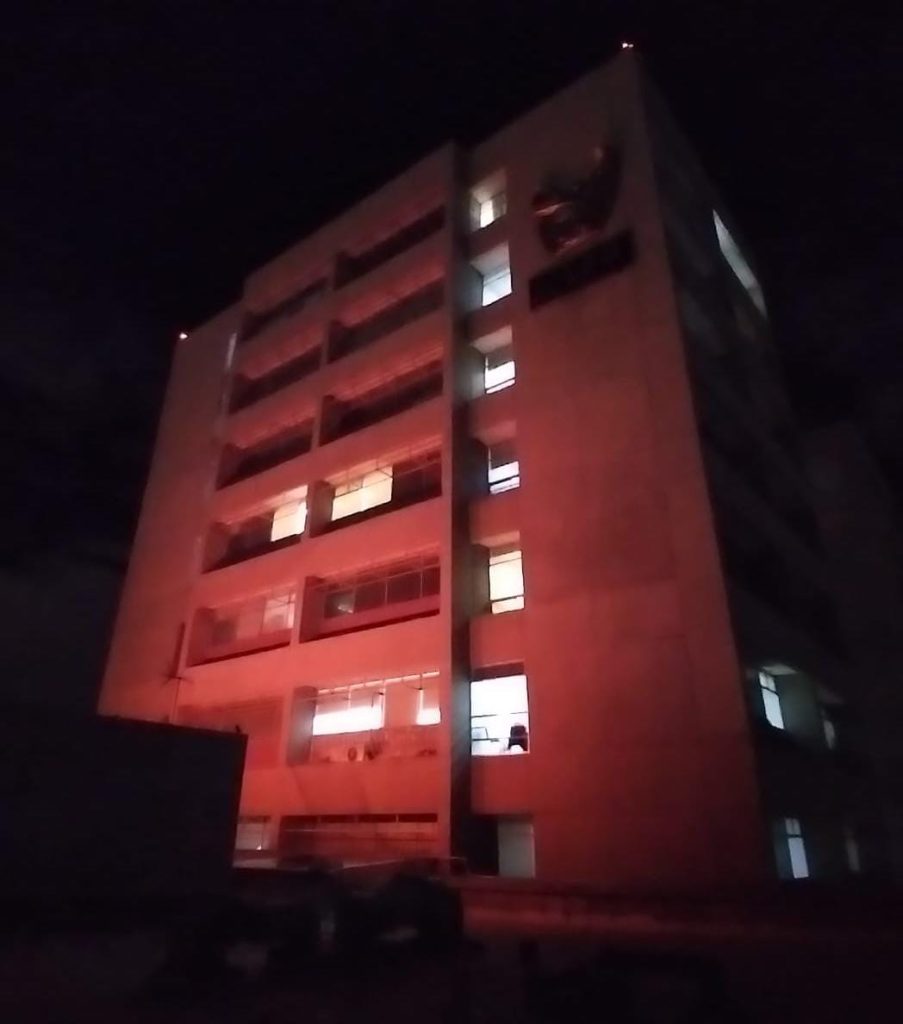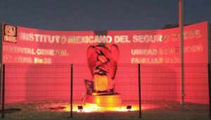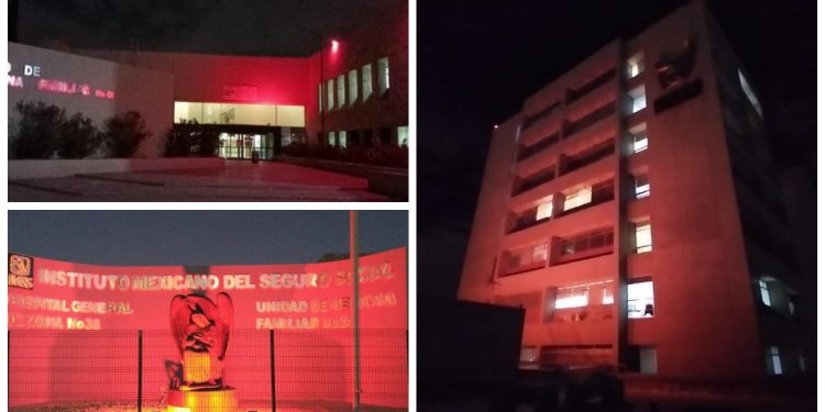 Las fachadas de inmuebles del Instituto Mexicano del Seguro Social (IMSS) en Chihuahua son iluminadas de color rojo, como parte de las acciones del desarrollo de la estrategia de Salud Integral de la Mujer y su riesgo cardiovascular.