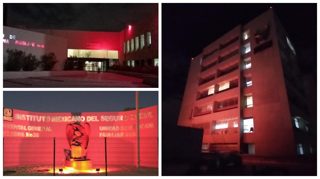 Las fachadas de inmuebles del Instituto Mexicano del Seguro Social (IMSS) en Chihuahua son iluminadas de color rojo, como parte de las acciones del desarrollo de la estrategia de Salud Integral de la Mujer y su riesgo cardiovascular.