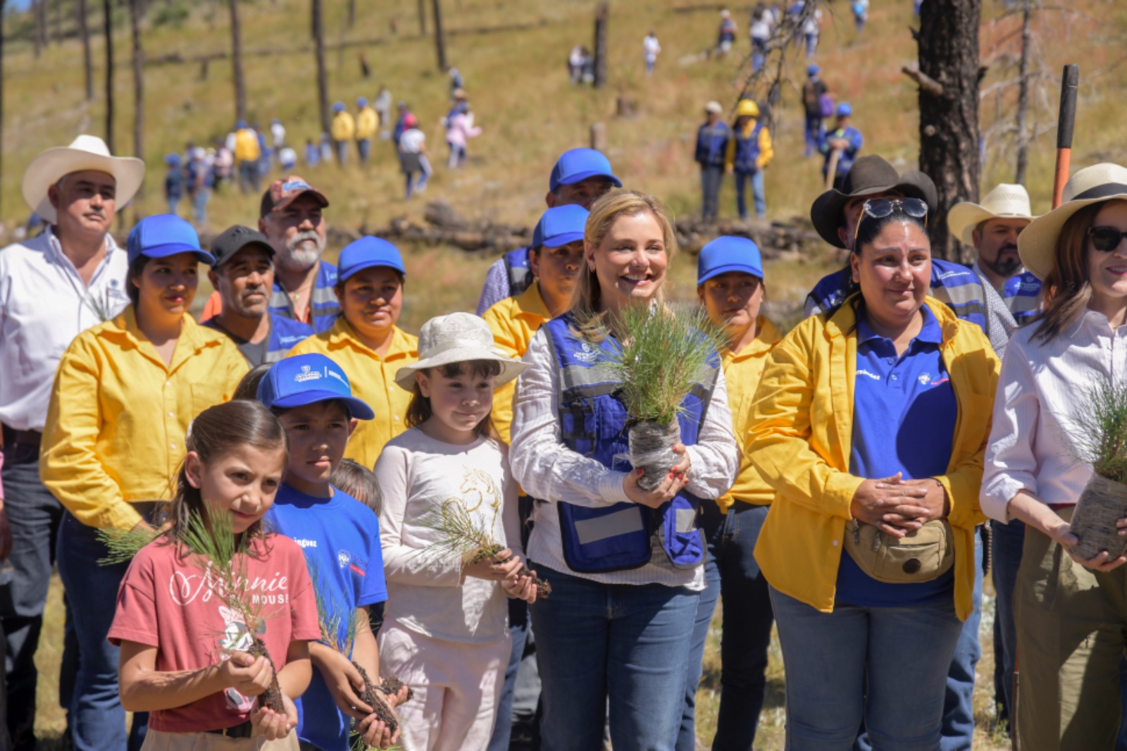 Con el fin de mitigar los efectos de los incendios forestales e impulsar el desarrollo sustentable, la gobernadora Maru Campos acudió a la Presa Situriachi para culminar con la entrega de 1.2 millones de árboles, destinados a reforestar la Sierra Tarahumara.