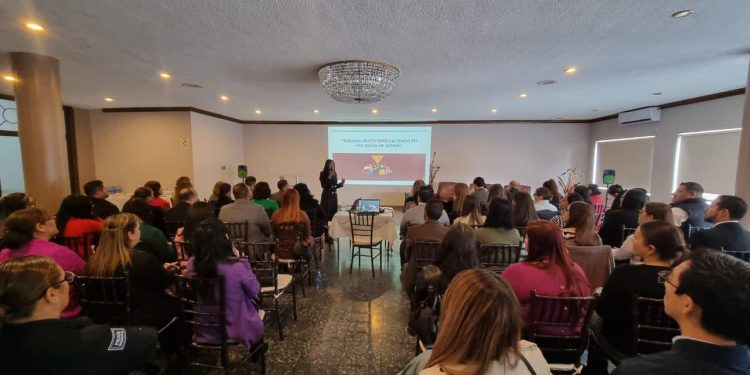El encuentro contó con la participación de las magistradas Ilian Yasel Iradiel Villanueva Pérez, coordinadora y creadora del TEVIOGEN, Sara Julieta Muñoz Andrade y Maribel Peinado Machuca, quienes compartieron su experiencia en la implementación del Tribunal Especializado en Violencia de Género. Este modelo, único en su tipo, busca agilizar los procesos judiciales y evitar la revictimización de mujeres y menores de edad, destacando la importancia de la justicia con perspectiva de género y la coordinación interinstitucional.