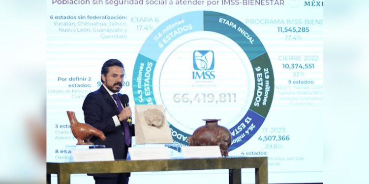 “Empezamos con un programa que tenía 11 millones de personas atendidas, 17 por ciento del total de la población sin seguridad social; al cierre de 2022, en los nueve estados donde iniciamos: Nayarit, Tlaxcala, Colima, Sonora, Sinaloa, Baja California Sur, Veracruz, Guerrero y Campeche, llegamos al 33 por ciento de este universo.”