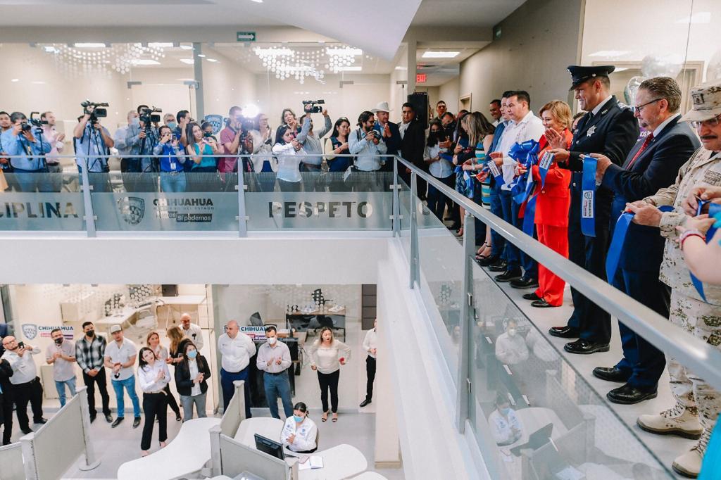 La gobernadora Maru Campos Galván inauguró esta tarde las oficinas de la Secretaría de Seguridad Pública Estatal (SSPE), que estarán ubicadas en la colonia Colinas de Ciudad Juárez.