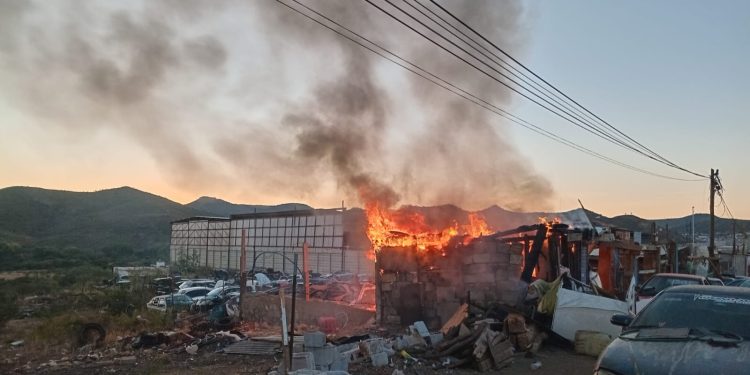 Un incendio registrado la mañana de este martes provocó la movilización de los cuerpos de emergencia, luego de que se reportara fuego en el cuarto del velador de una chatarrera, ubicada sobre la salida a Chihuahua, a unos metros de la colonia San José.