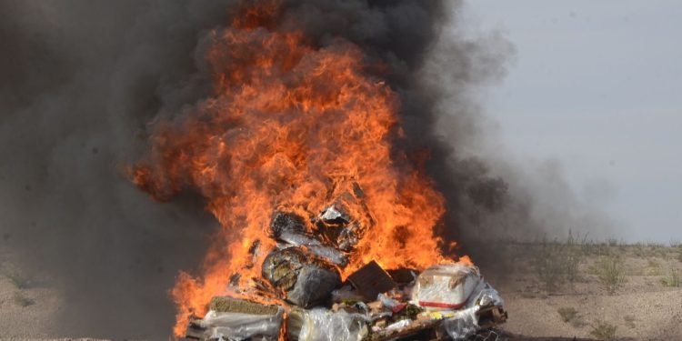 La Fiscalía General de la República (FGR), a través de su Fiscalía Especializada de Control Regional (FECOR) en el estado de Chihuahua, llevó a cabo una incineración en la que se destruyeron 438 kilos 591 gramos con 447 miligramos, así como, 425 unidades de psicotrópicos, 185 unidades de nicotina y cuatro piezas de objetos del delito, en coordinación con la Secretaría de la Defensa Nacional (Defensa).
