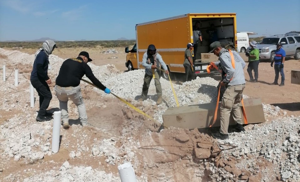 La Fiscalía General del Estado a través de la Dirección de Servicios Periciales y Ciencias Forenses con sede en Ciudad Juárez, llevó a cabo la inhumación de 55 cuerpos que permanecían sin identificar y/o sin reclamar y que han sido debidamente clasificados y documentados.
