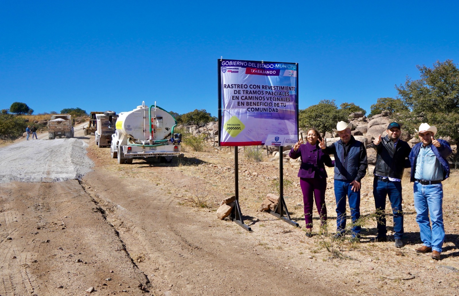 En lo concerniente a revestimiento de caminos, se atienden 126 kilómetros en tramos parciales en las vías: El Vergel-San Carlos, Llanitos-La Haciendita, La Magdalena-Valle El Manzano, Baquiriachi-Pinalejo, El Ranchito-La Magdalena, Los Llanitos-La Haciendita y el entronque de la carretera Balleza- Guachochi, con Guazarachi.