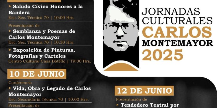 Este lunes por la noche darán inicio las Jornadas Culturales Carlos Montemayor, un evento promovido por el Gobierno de Parral con el objetivo de rendir tributo a uno de los escritores más emblemáticos nacidos en esta tierra. La ceremonia inaugural se celebrará en el Centro Cultural Casa Botello, con una Exposición de Pinturas, Fotografías y Carteles, programada a partir de las 19:00 horas.
