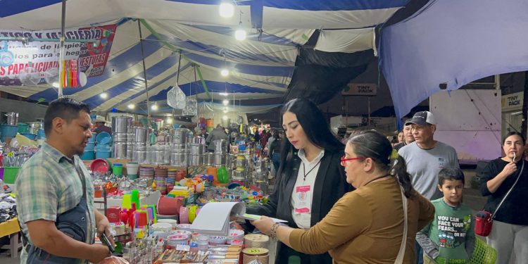 La síndica Municipal de Parral, Dalila Villalobos, se encuentra realizando un operativo de inspección en la Feria del Hueso como parte de las actividades del Festival de los Muertos.