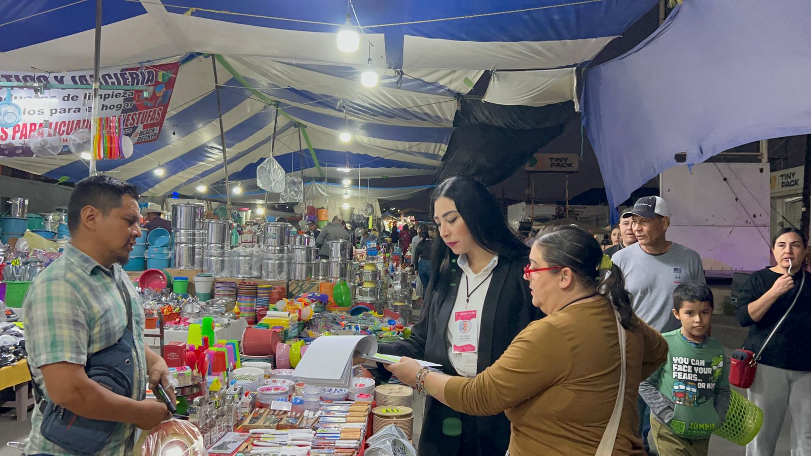 La síndica Municipal de Parral, Dalila Villalobos, se encuentra realizando un operativo de inspección en la Feria del Hueso como parte de las actividades del Festival de los Muertos.
