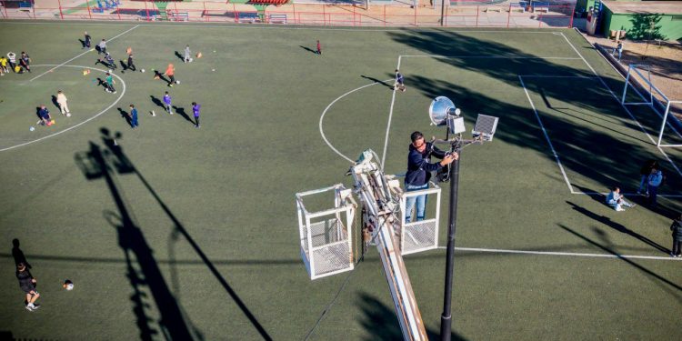 El alcalde Salvador Calderón realizó la instalación de nuevas luminarias en la deportiva de la colonia Emiliano Zapata, una acción que responde a la necesidad de contar con espacios públicos mejor equipados y más seguros para la práctica deportiva y la convivencia familiar.