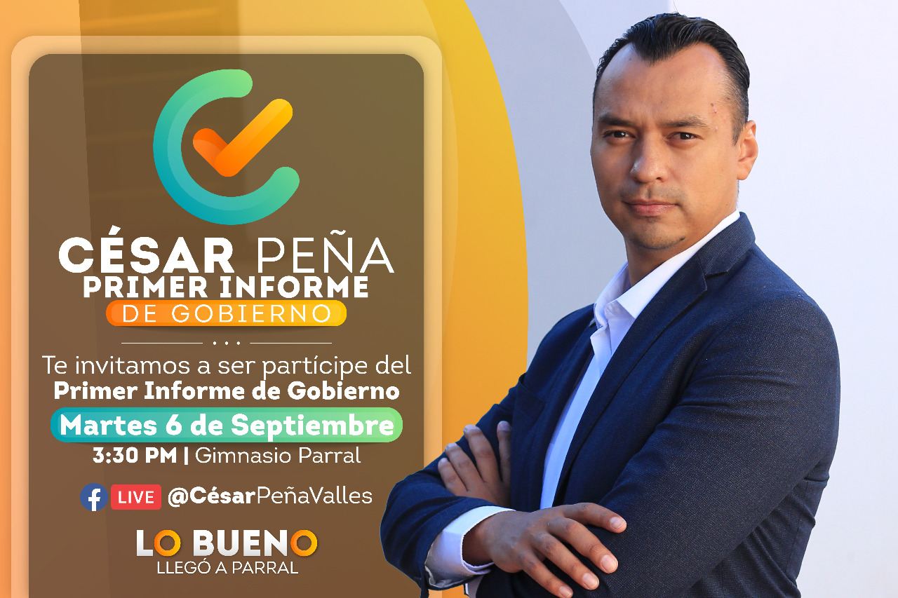 Todo está listo para el evento donde el alcalde César Peña Valles presentará su Primer Informe de Gobierno. Es por ello que hizo la invitación a la población para que sean partícipes de los logros obtenidos en conjunto.