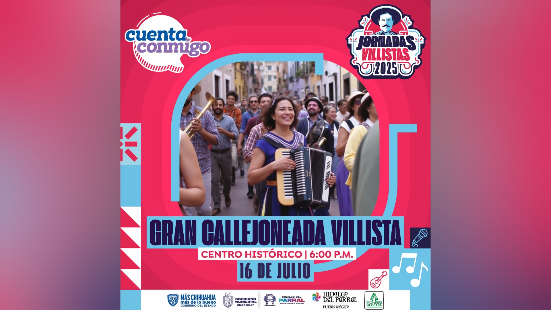 El Gobierno de Parral extiende la invitación a formar parte de la tradicional Callejoneada Villista, un evento lleno de color, música y tradición que se realizará este miércoles 16 de julio a partir de las 6:00 de la tarde, teniendo como punto de partida el Centro Histórico de la ciudad.