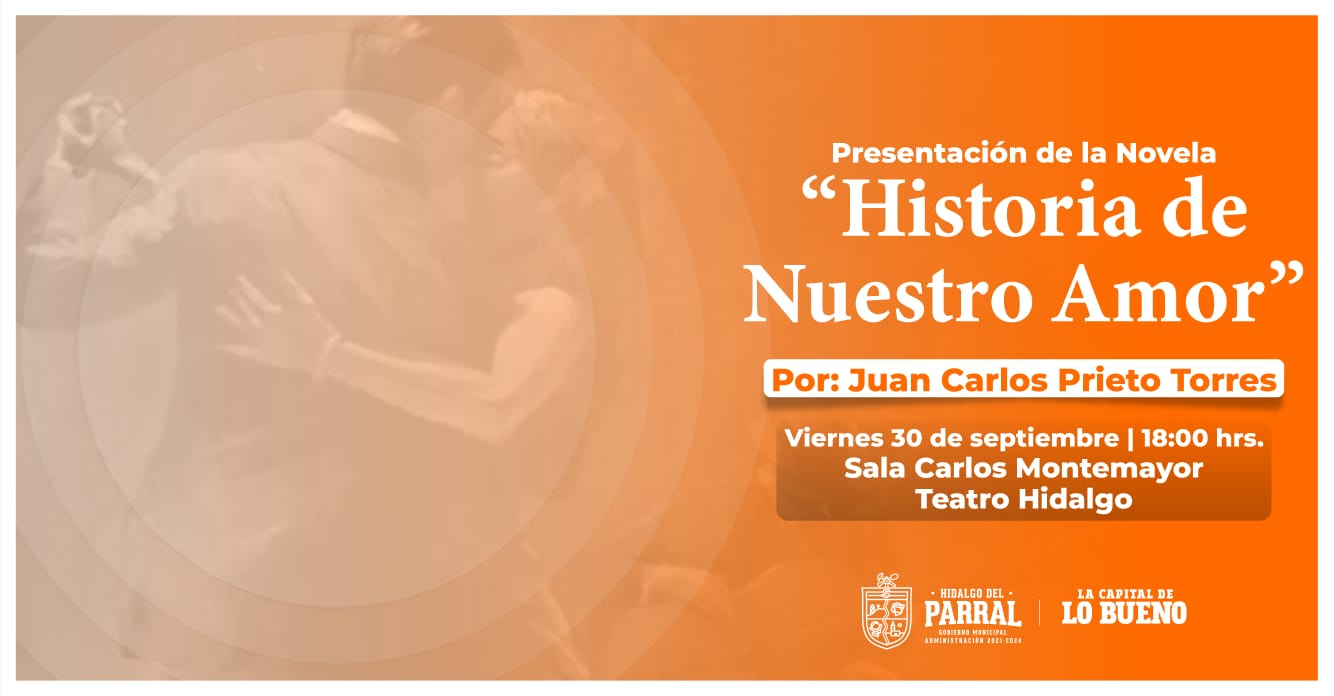 El Gobierno de Parral, a través de la Dirección de Cultura, invita a la ciudadanía a ser testigo de la presentación de la novela “Historia de nuestro amor”, del autor Juan Carlos Prieto Torres, que se llevará a cabo el próximo 30 de septiembre.