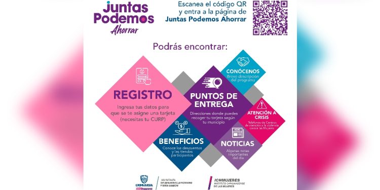 El Instituto Chihuahuense de las Mujeres (Ichmujeres) pone a disposición de todas las mujeres mayores de edad, las tarjetas de descuento “Juntas Podemos Ahorrar” las cuales tienen como objetivo contribuir a la economía familiar, al promover un mayor poder adquisitivo, a la vez que incentivar la economía local de las empresas participantes.