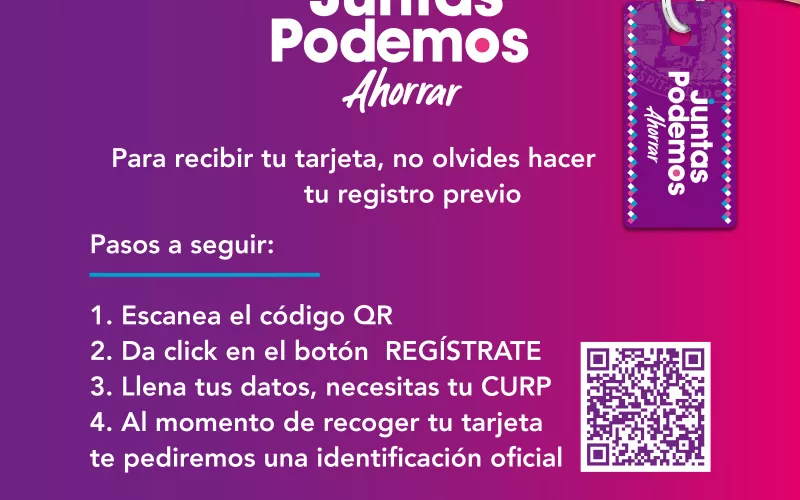 Para registrarse escanear el código QR y acceder a la página Juntas Podemos Ahorrar entrar a la página: https://registrojpa.institutochihuahuensedelasmujeres.gob.mx/, solo se requieren datos de la Clave Única de Registro de Población (CURP) y para recogerla deberán presentar identificación oficial.