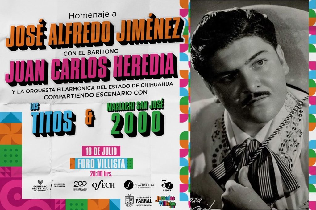 En el evento unirán sus talentos los músicos de la Orquesta Filarmónica del Estado de Chihuahua (OFECh), el barítono Juan Carlos Heredia, el grupo chihuahuense Los Titos y el Mariachi San José 2000, quienes interpretarán las piezas más emblemáticas de “el hijo del pueblo”.