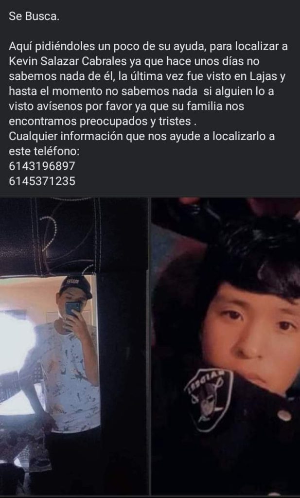 En las cercanías de la localidad Arroyo de Lajas, en el municipio de Guanaceví, una persona encontró el cuerpo en descomposición de un varón y, al observar más de cerca, se percató que la ropa que portaba coincidía con la descrita con un menor desaparecido en Chihuahua.