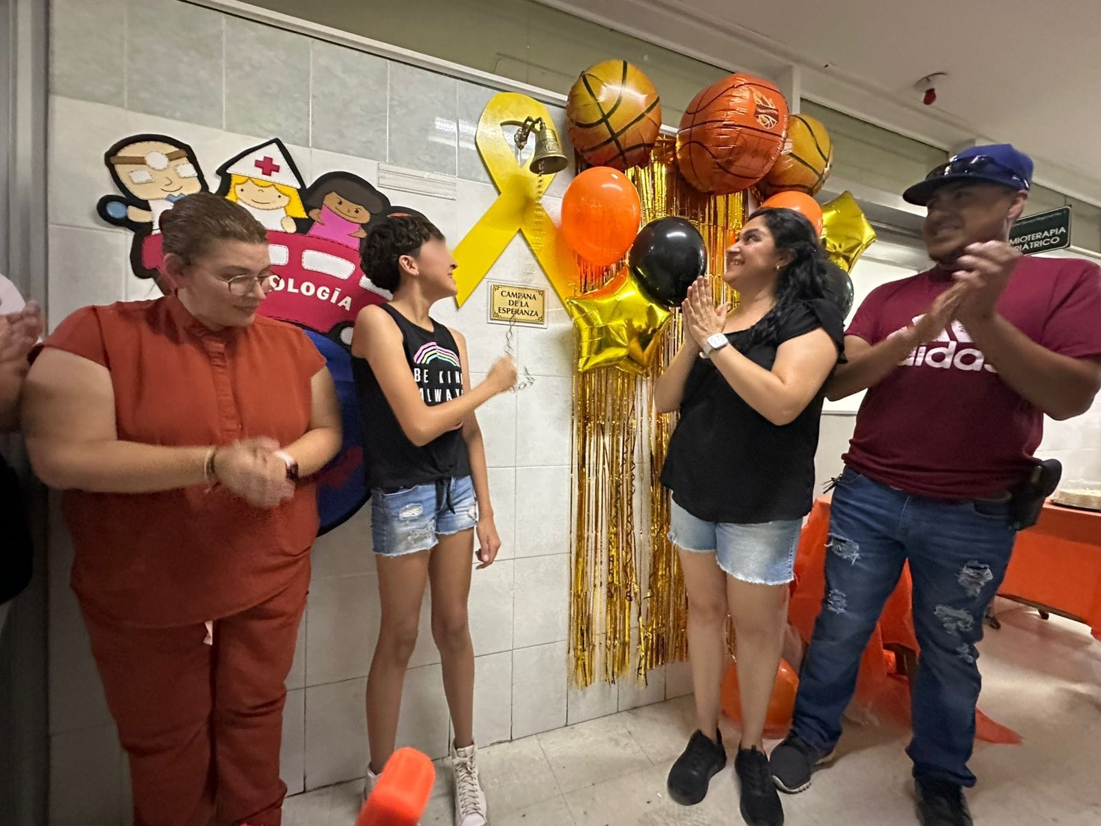 Sus ganas de vivir y salir adelante la llevaron a vencer el cáncer y tocar la “Campana de la Victoria”, ubicada en el área de Pediatría del Hospital General Regional (HGR) No.1 “Morelos” del IMSS en Chihuahua, ante la presencia de personal médico, de enfermería, pacientes, amigos, familiares y compañeros basquetbolistas.