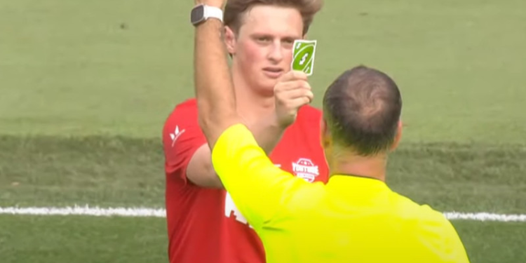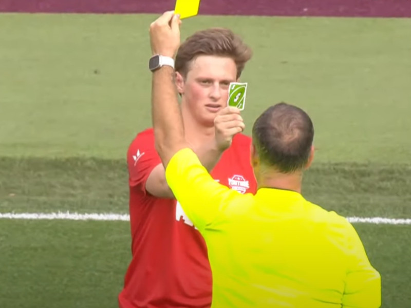 Max Fosh protagonizó un momento cómico durante el partido benéfico de youtubers disputado en Londres al mostrarle una carta de UNO al árbitro que le dio una tarjeta amarilla de amonestación.