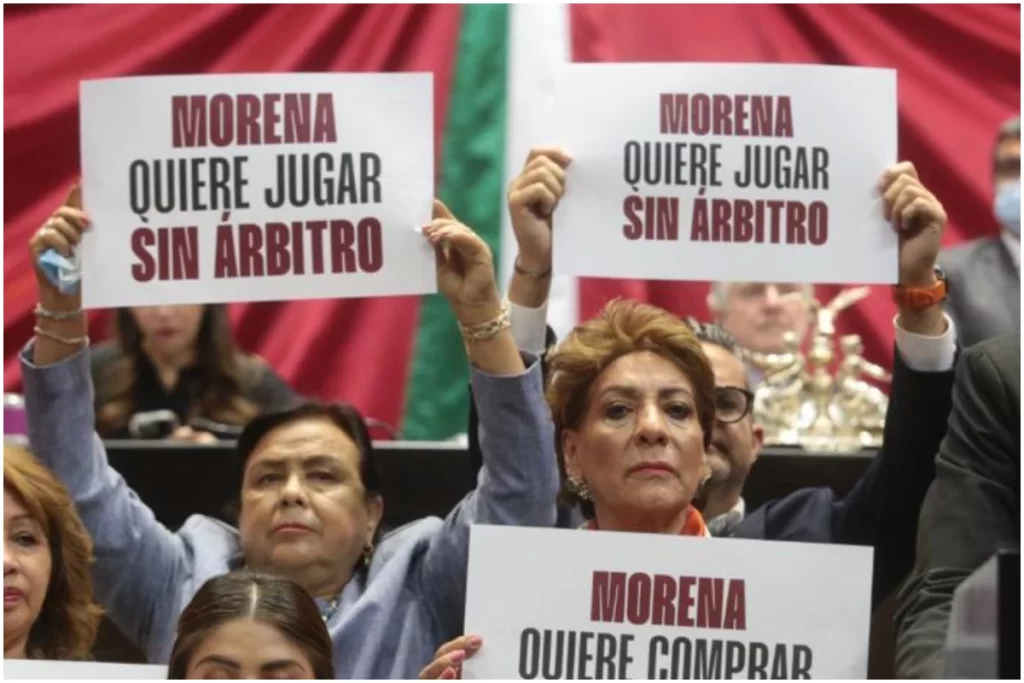 Las negociaciones de Morena y aliados lograron modificar la propuesta presidencial, conocido como Plan B, pues originalmente propuso que los diputados y senadores que buscaran la reelección debían solicitar licencia “hasta un día antes del inicio de las campañas”, pero esa obligación quedó eliminada.