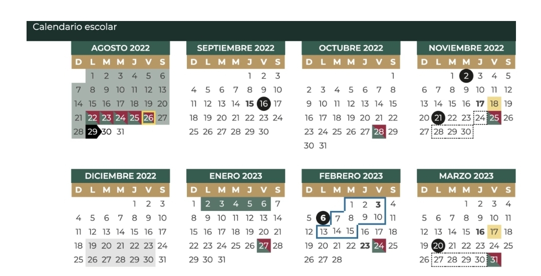 Los cinco días de descanso extra de descanso corresponderán del lunes 2 de enero al viernes 6 de enero del 2023, de acuerdo con el calendario oficial de la SEP.