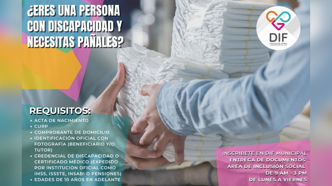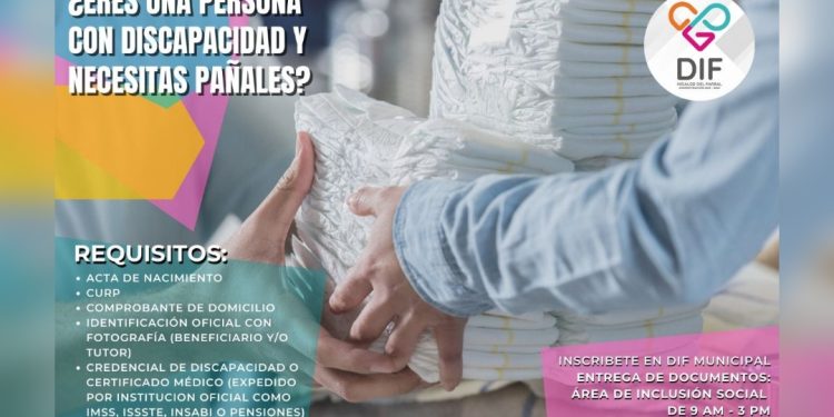 Lanza DIF Municipal convocatoria para dotar de pañales a personas con discapacidad