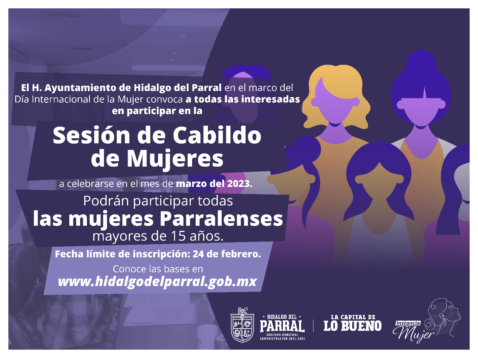 En el marco de las actividades conmemorativas del Día Internacional de la Mujer, el Gobierno de Parral anuncia la implementación de una nueva edición del mecanismo de participación ciudadana denominado «Cabildo de la Mujer», importante evento que tiene como objetivo promover su participación y empoderamiento en la sociedad y fomentar la igualdad de género.